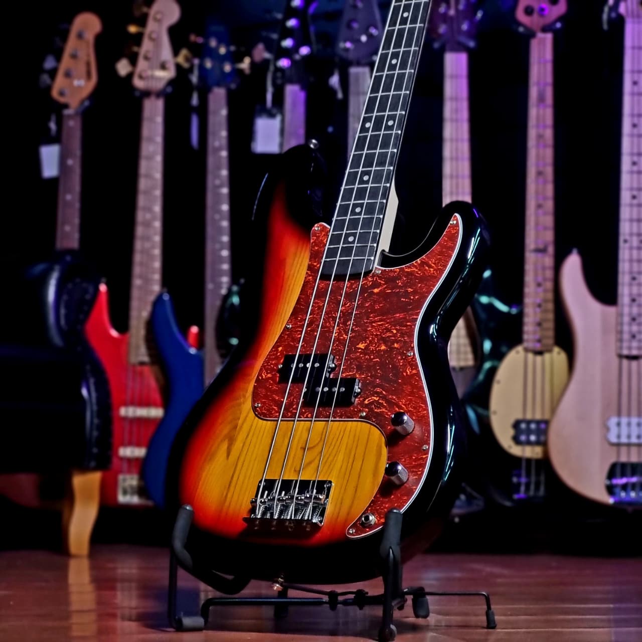 Ele é um Precision Bass com headstock inspirado nos instrumentos vintage da década de 70, captadores em configuração SplitCoil e ponte Vintage.